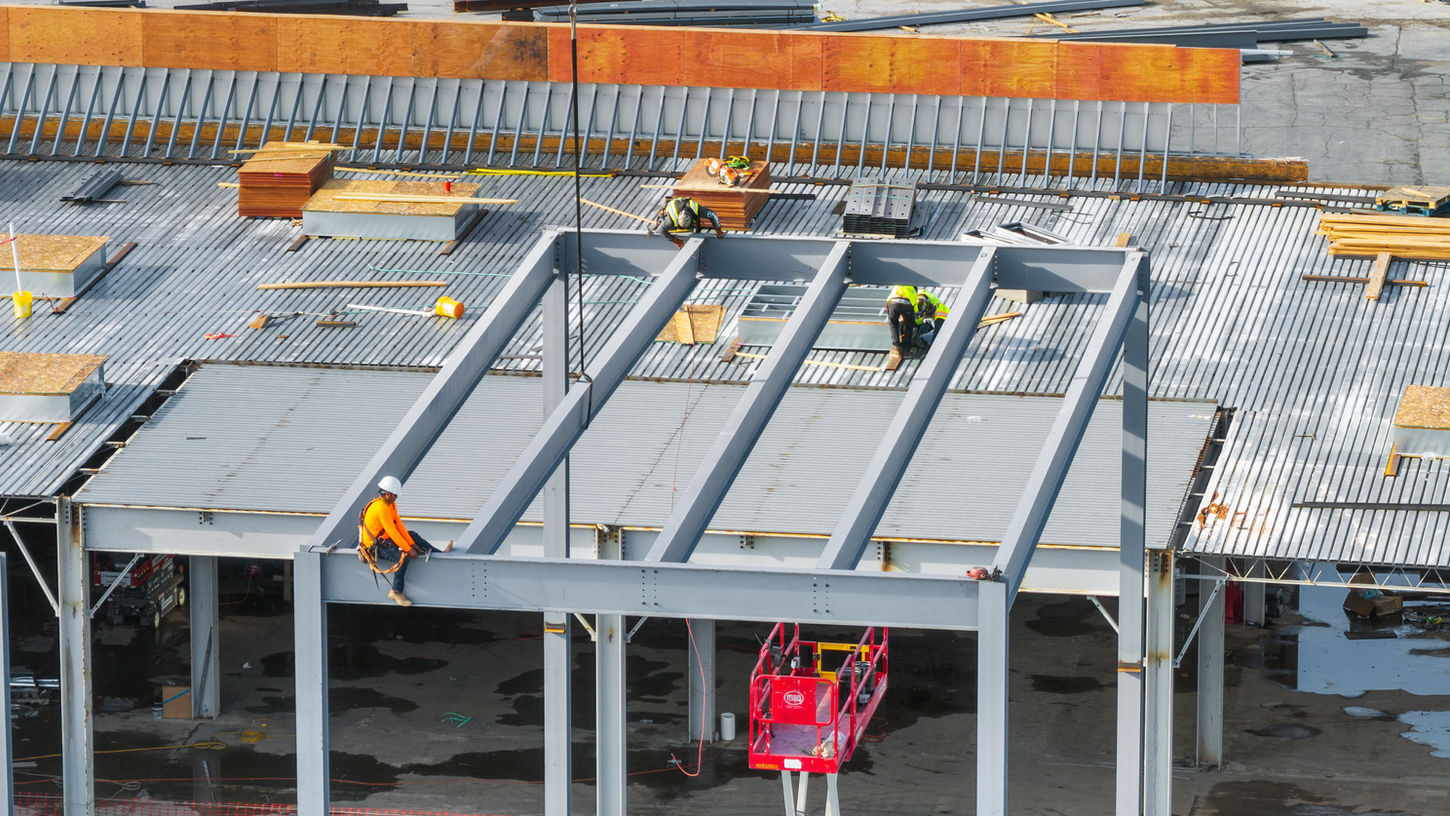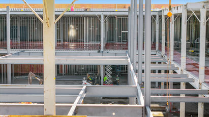 Steel frame of approx. 250 tons supporting a large open-space retail/entertainment building.